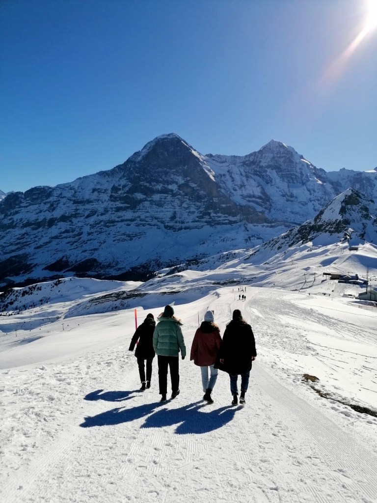 Am 4.02.2023 veranstalteten Harry und ich eine kleine „Flohmarkt/Tschüss-Party“. Alles in der Wohnung konnte „ersteigert“ werden, indem es mit einem Post-it Zettel markiert wurde. Das gesammelte Geld spendeten wir an die Orang-Utan-Foundation. Am Tag danach begannen herrliche letzte Tage in den Bergen: Zuerst reiste ich mit Angi für drei Tage ins Goms zum Langlaufen und nach einem kurzen Stopp in Basel weiter nach Grindelwald zum Skifahren auf aperen Pisten mit meinen Freundinnen aus Luzern.