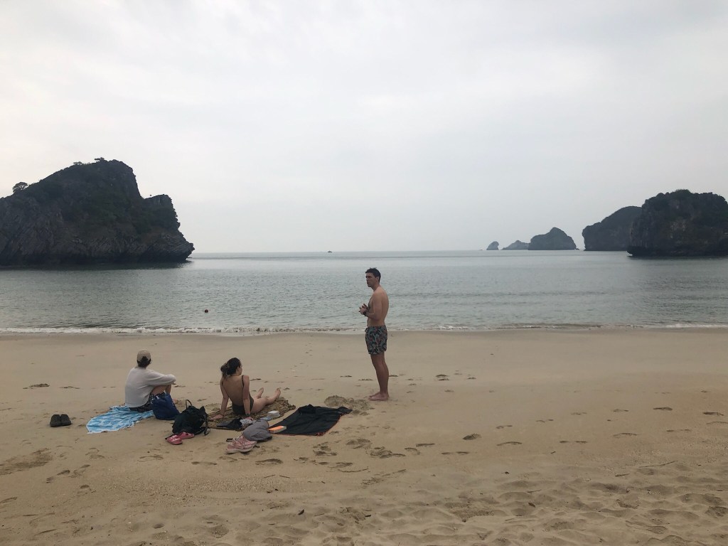 Cat Ba – Strophe! Dachten wir im ersten Moment, als wir nach der 11-stündigen Nachtbus-Reise mit Liegesessel im Hotel angekommen sind. Die Reise war besser als der Nachtzug. Müde waren wir trotzdem und freuten uns auf Entspannung am Pool unseres Hostels. Jedoch wird das Hostel sowie das Hotel nebenan zurzeit erweitert und der Lärmpegel war entsprechend hoch. So entschieden wir uns für einen Nap am Strand, gefolgt von einem ersten Mittagessen mit frischem Fisch – was die Situation erheblich entspannte.