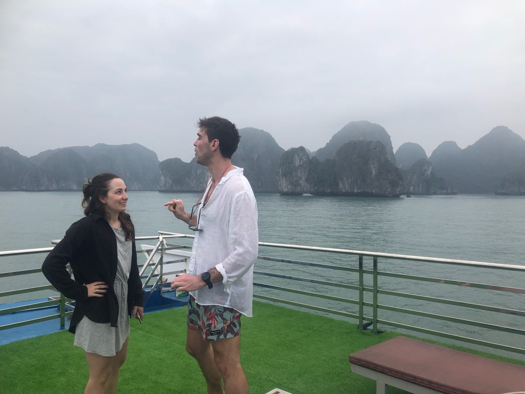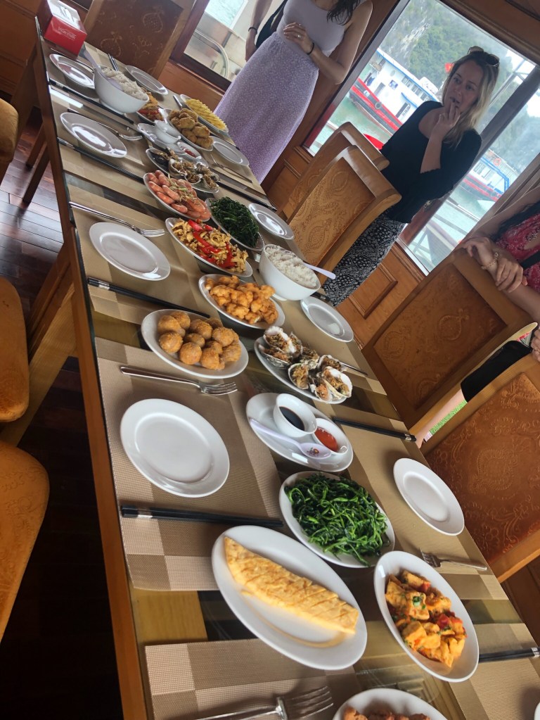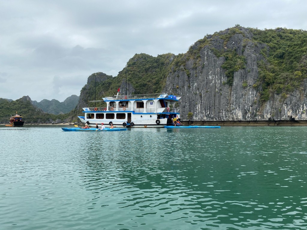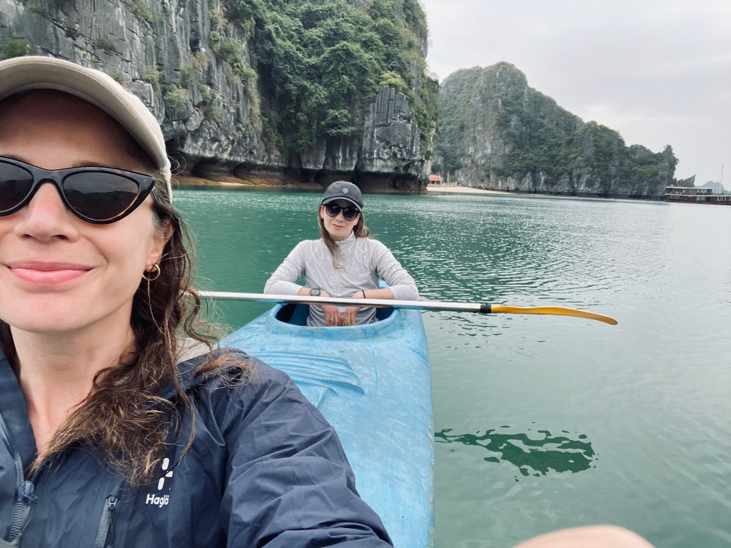 Natürlich mussten wir auch die von allen empfohlene, zweitägige Bootstour durch Ha Long Bay und Lan Ha Bay (die weniger berühmte und genauso schöne Nachbarin des Ha Long Bay) erleben! Wir kayakten, ählich wie in Schweden, durch die Höhlen, bewunderten die wunderschöne Aussicht vom Boot, schwammen zu verlassenen Stränden und genossen gutes Essen.