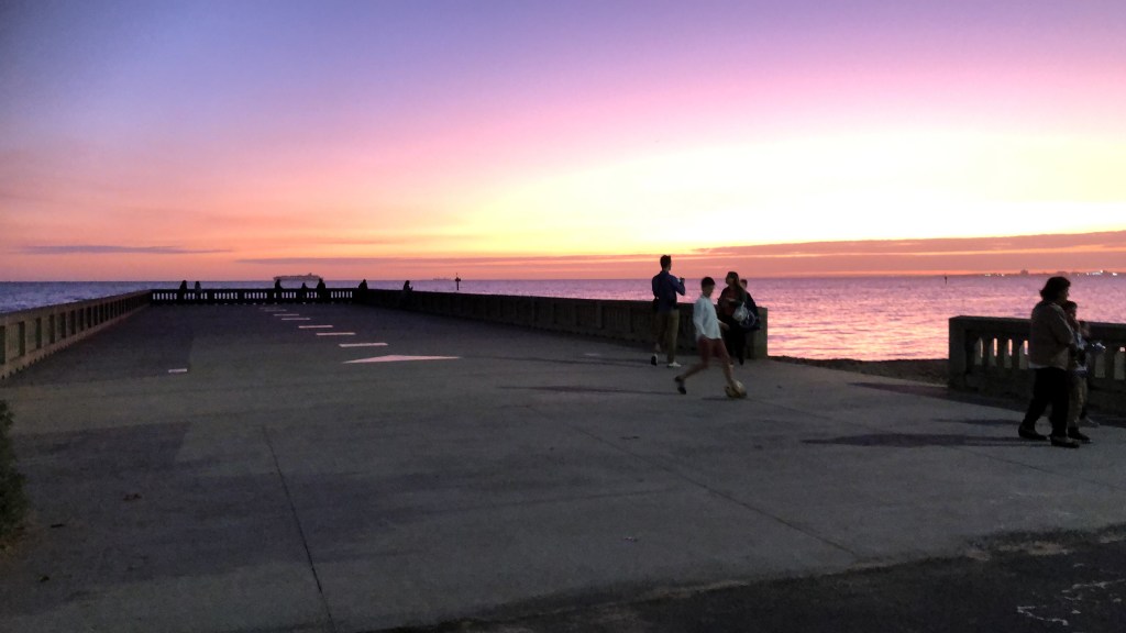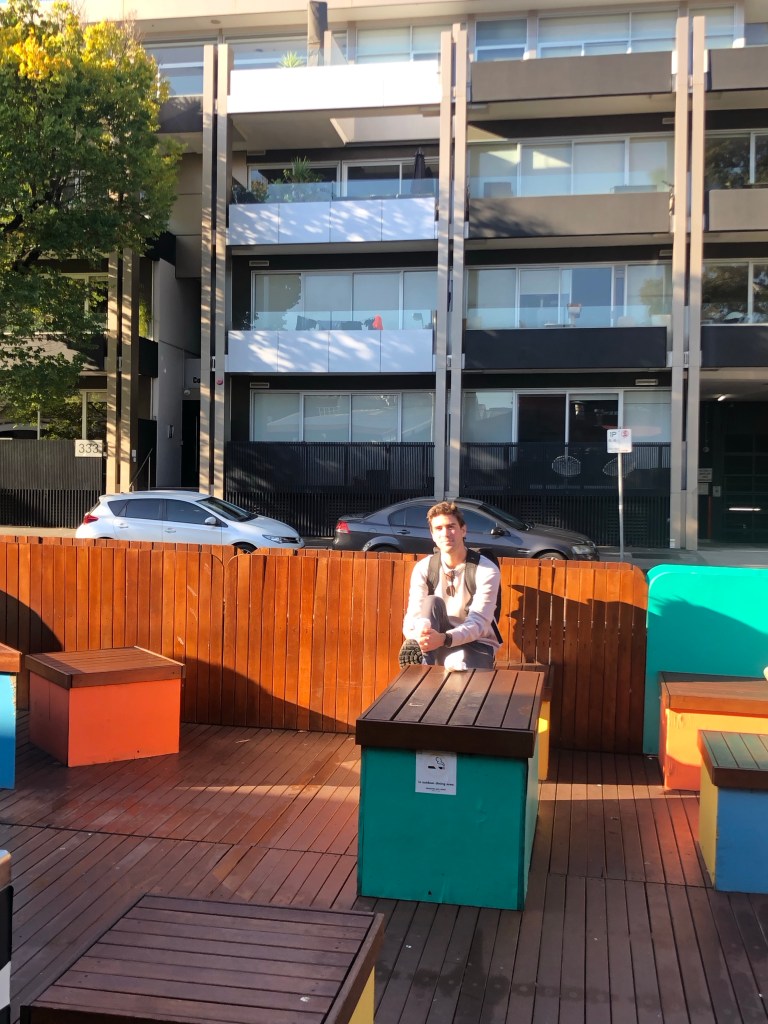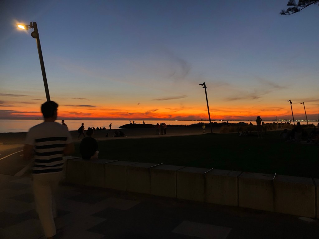Heute ist Sonntag, etwa 21 Grad warm und ich sitze hier in der Sonne am Strand, 3 Minuten von unserem neuen Zuhause entfernt. Ich fühle mich grossartig. Die Wohnung ist soo soo toll. Alles, was wir uns für unsere Wohnung gewünscht haben, haben wir an der Beach Avenue in Elwood gefunden. Es ist eine 3-Zimmer-Wohnung und wir haben endlich ein Büro/Gästezimmer, eine grosse offene Küche, wo wir unser Frühstück an der Küchenbar geniessen und eine eigene Waschmaschine. Die Wohnung ist bereits gut eingerichtet. Es fehlen unter anderem noch ein paar Pflanzen und Kunst für die Wände. Am ersten Abend in der neuen Wohnung packten wir unser Abendessen in zwei Tupperwares und genossen es am Strand, mit einem wunderschönen Sonnenuntergang. Hier zu leben, fühlt sich an, als wäre ich in den Ferien. Elwood, unser Suburb, hat so gar keinen Grossstadtvibe, sondern fühlt sich eher an wie ein Dorf am Meer. Es gibt eine Strasse mit Einkaufsmöglichkeiten, Kaffees, Bäckerei, Restaurants, eine hippe Bar und feine Gelatis. Der CBD – Central Business Distrikt, ist gut 30 Minuten entfernt, mit dem Fahrrad, alles dem Strand entlang.