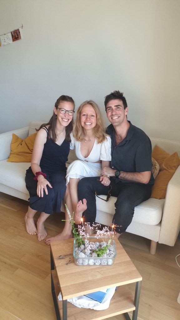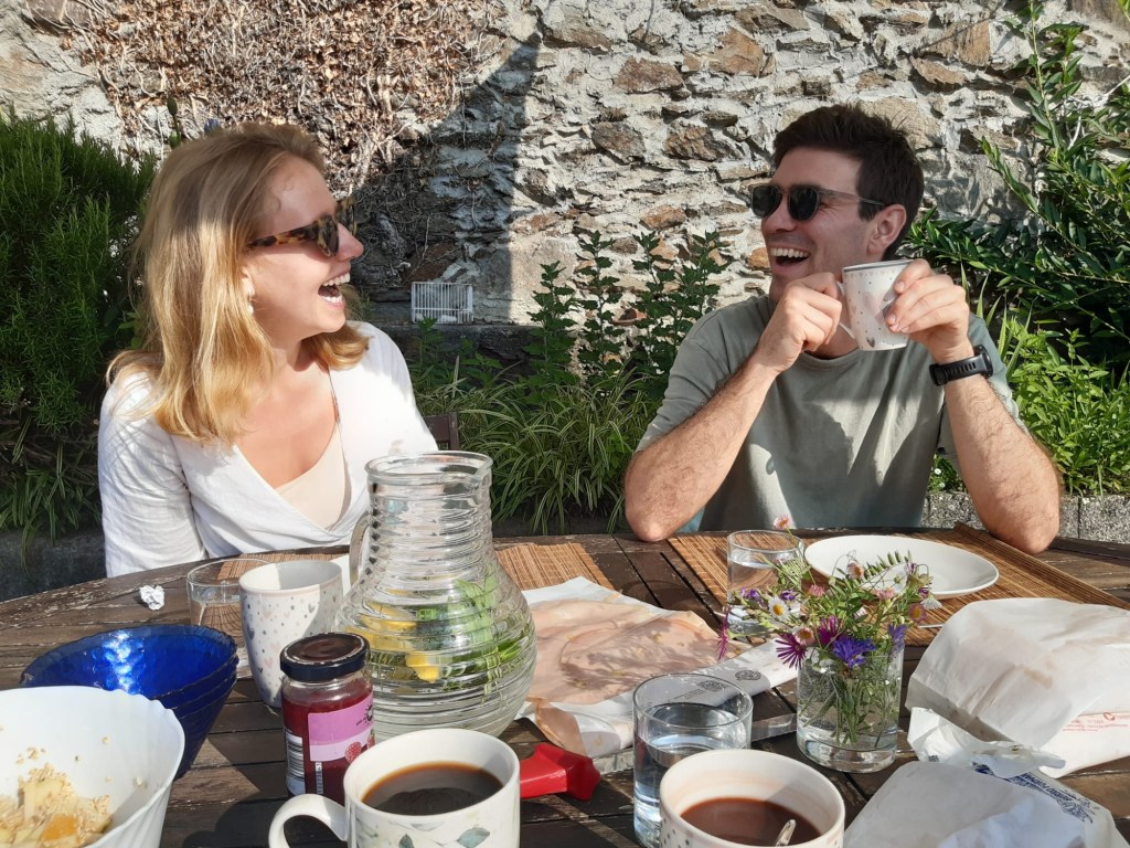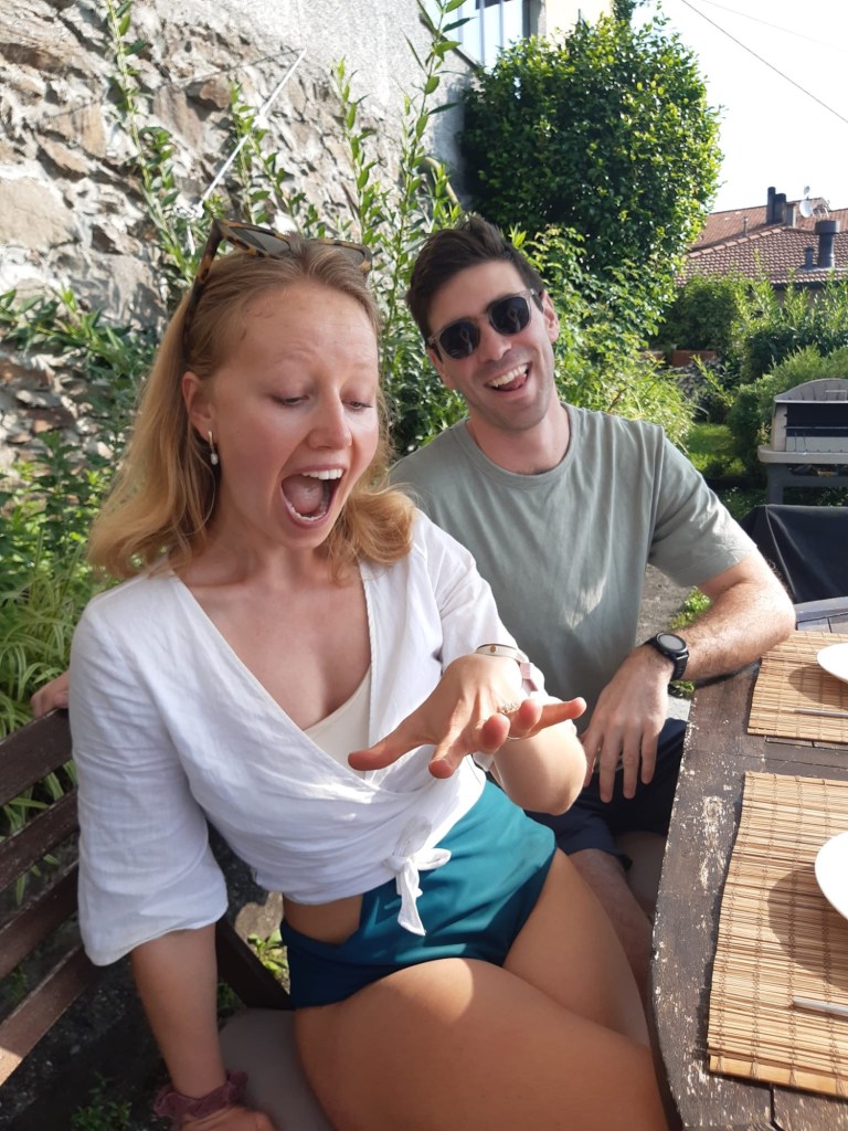 Dann die Ferienwoche in Italien am Comer See mit meiner Familie , grossartigen Wanderungen, gutem Espresso und Badespass. Mitte Woche der Überraschungsbesuch von Harry, und am folgenden Morgen, meinem 30. Geburtstag, nach dem morgendlichen Schwumm im See, als wir allein auf der kleinen Piazza standen, das Panorama bewunderten und die Wärme der aufgehenden Sonne spürten, frage mich Harry, ob ich mit ihm den Rest meines Lebens verbringen möchte. Ich sagte JA, bevor er fragen konnte. Ein magischer magischer Tag – ganz verzaubert von dem Märchen – welches ich Leben darf. Vielleicht der beste Tag überhaupt. Noch immer schwebe ich in einer Liebeswolke – was für ein unvergesslicher Moment. Die Verlobungs- & Geburtstagsparty mit all unseren liebsten Freund*innen am folgenden Sonntag so voller Liebe, hab ich in soo schöner Erinnerung.